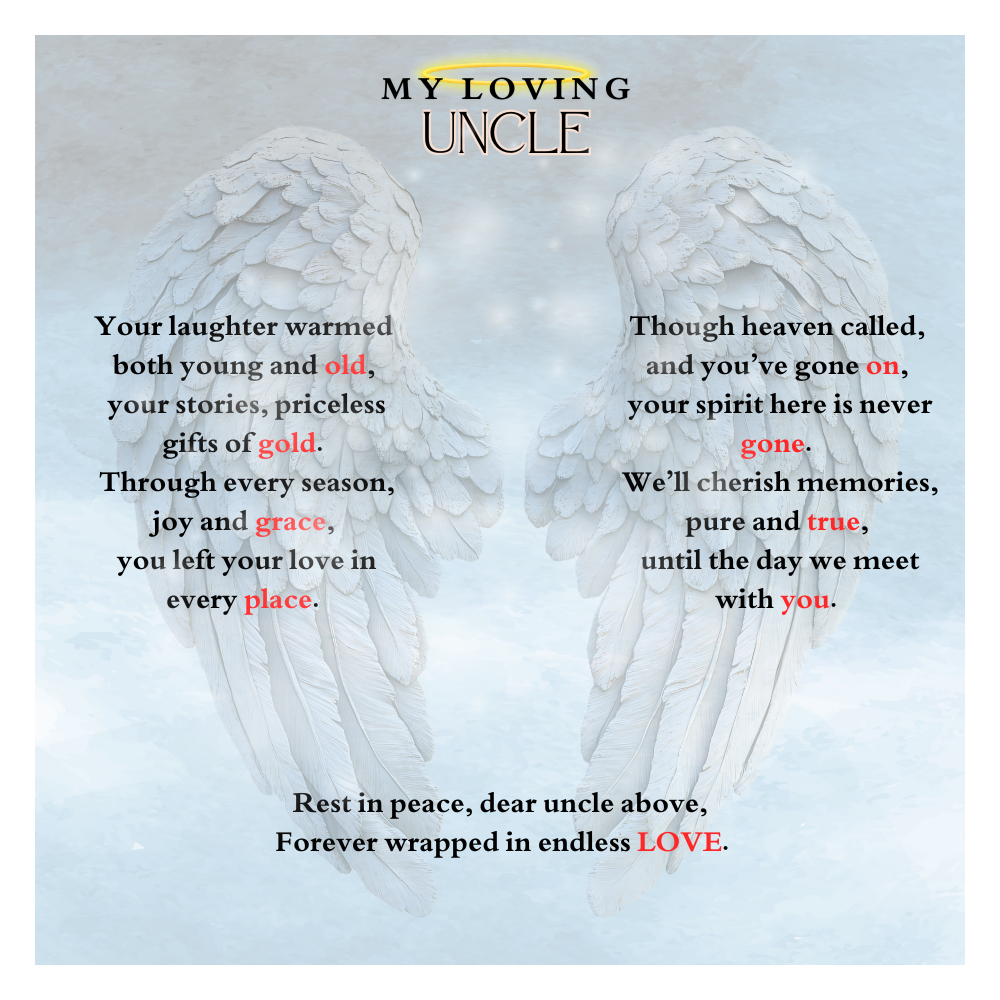 IN LOVING MEMORY OF MY LOVING UNCLE HEART NECKLACE