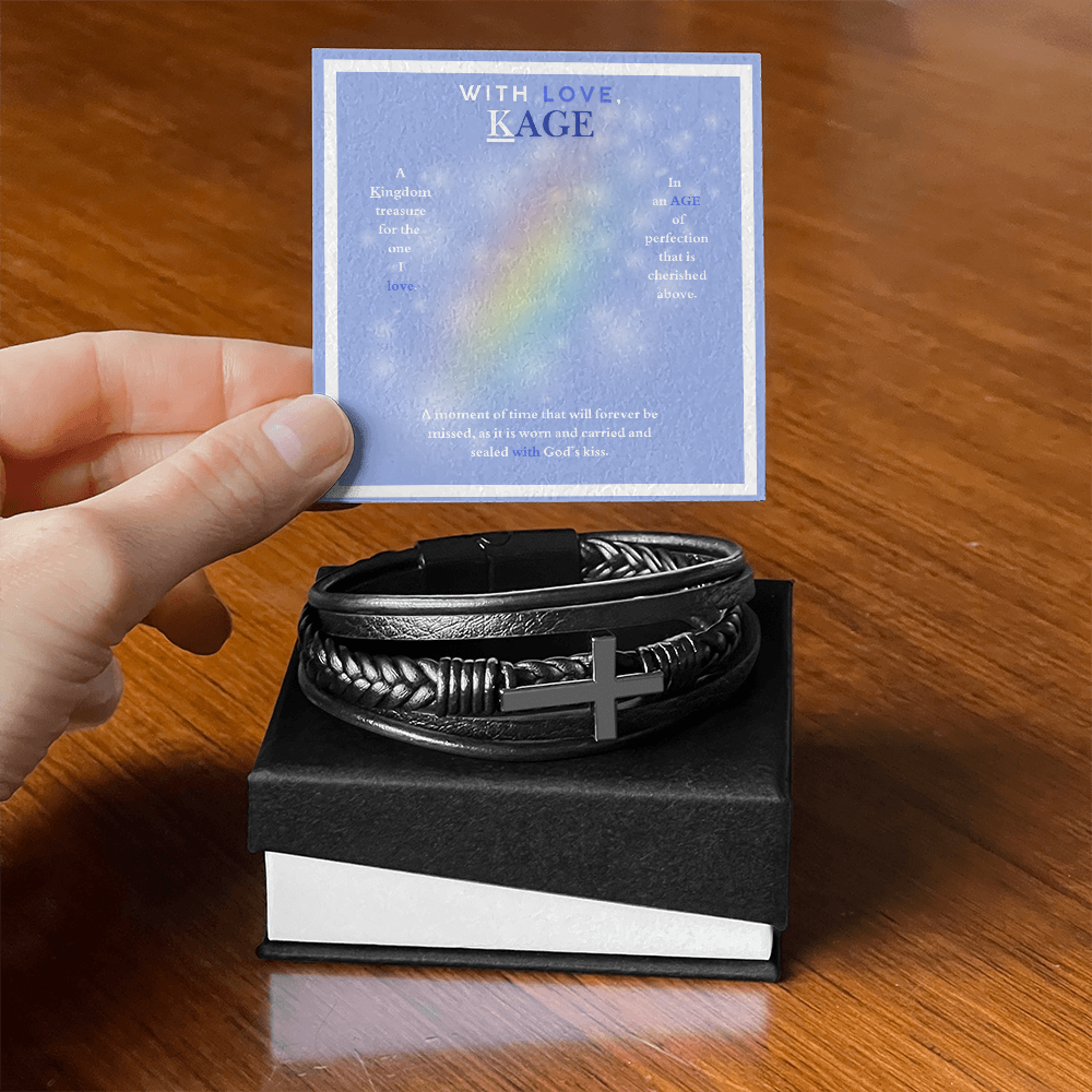This Men's Cross Leather Bracelet is the perfect keepsake for someone special in your life. Handcrafted with care, this piece features braided vegan leather and a sleek stainless steel cross. This would make an ideal gift for your beloved partner, family members, or dear friends on special occasions like anniversaries, birthdays, or any event where you want to express your love and appreciation in an unforgettable way.